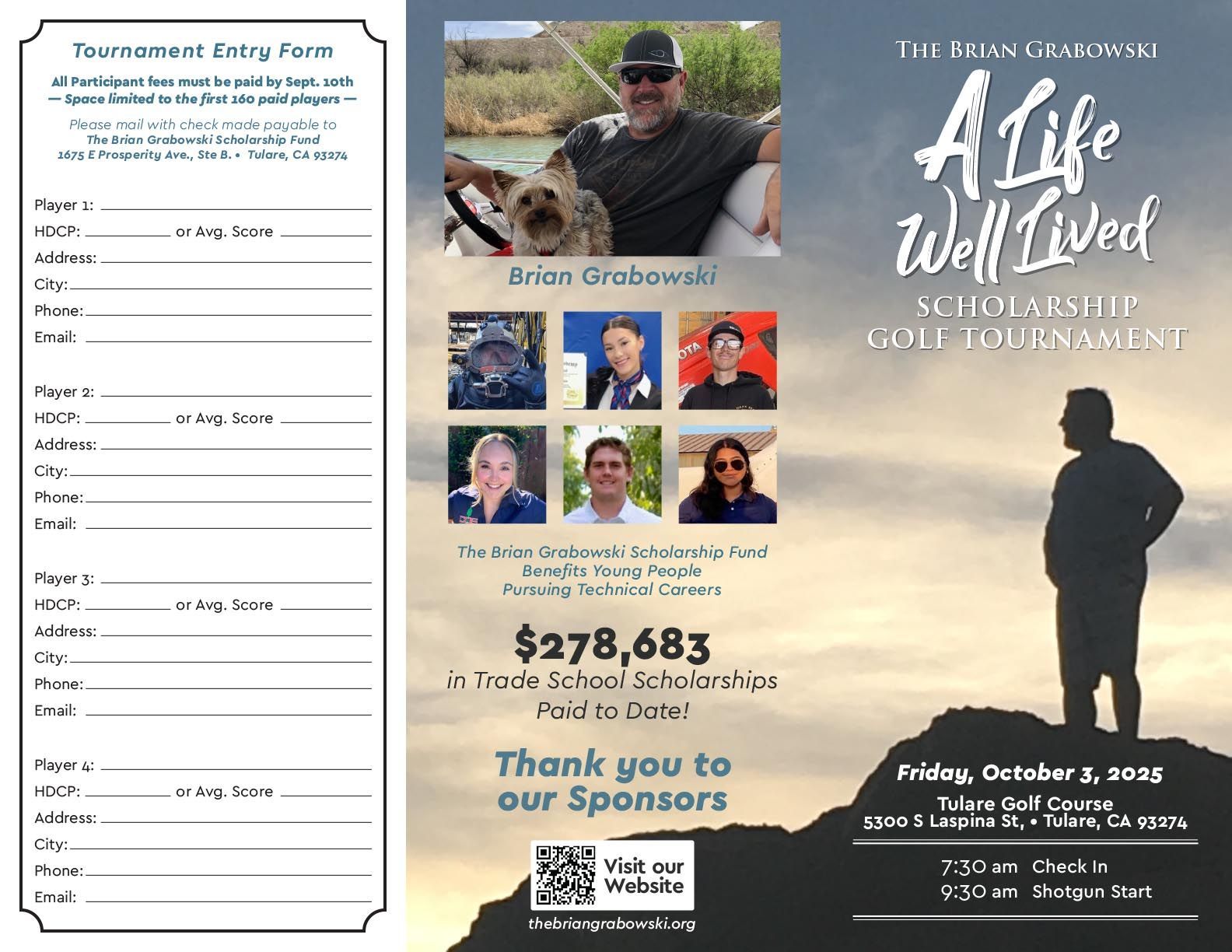 The Brian Grabowski - A Life Well Lived Scholarship is proud to provide this scholarship program for deserving high school seniors or graduates who are passionate about being a productive, working American.